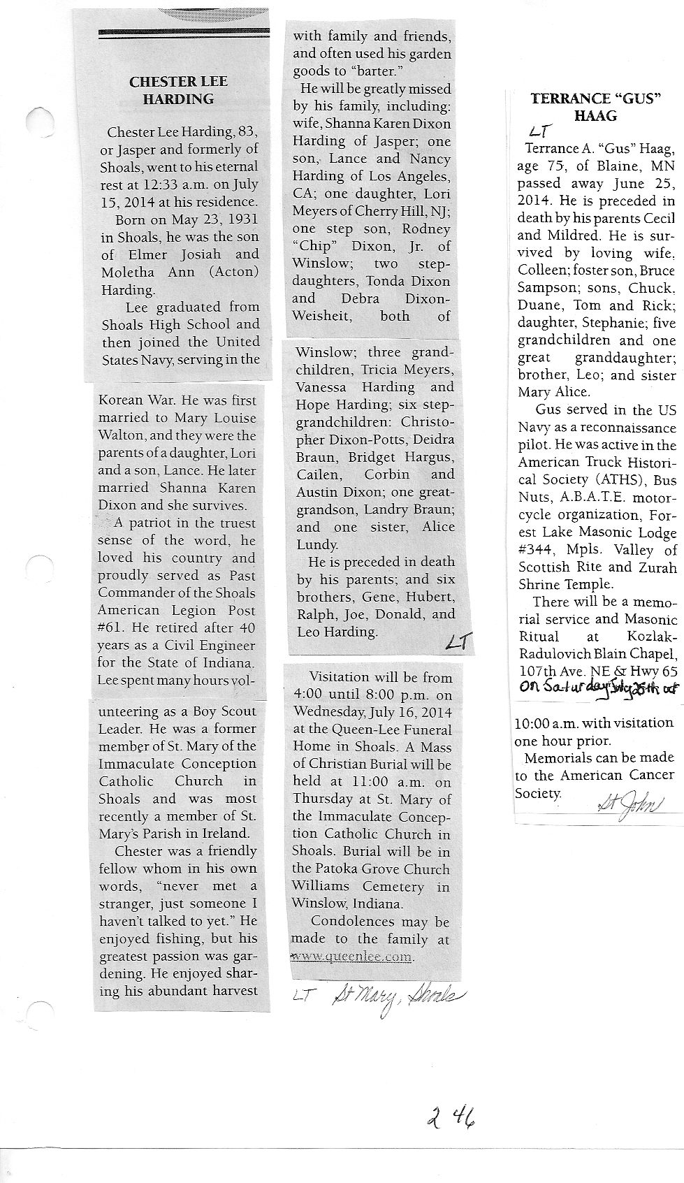 HAAG Terrance A 'Gus' | St John | 2014 | 0246 | HAYS Linda L (Ash) | St Mary, Barr Twp | 2014 | 0247 |